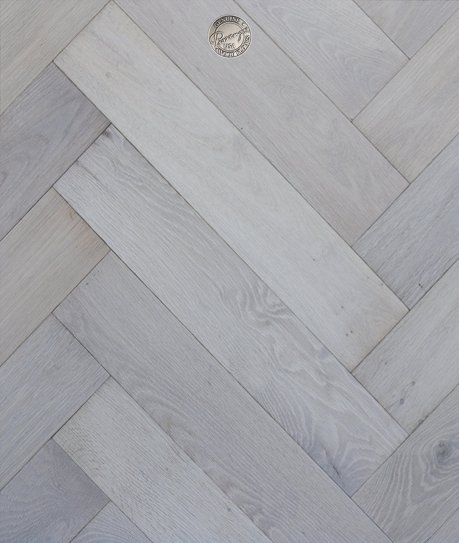 4" x 24" Herringbone - White Oak - Silver Grey Engineered Hardwood - HR18321